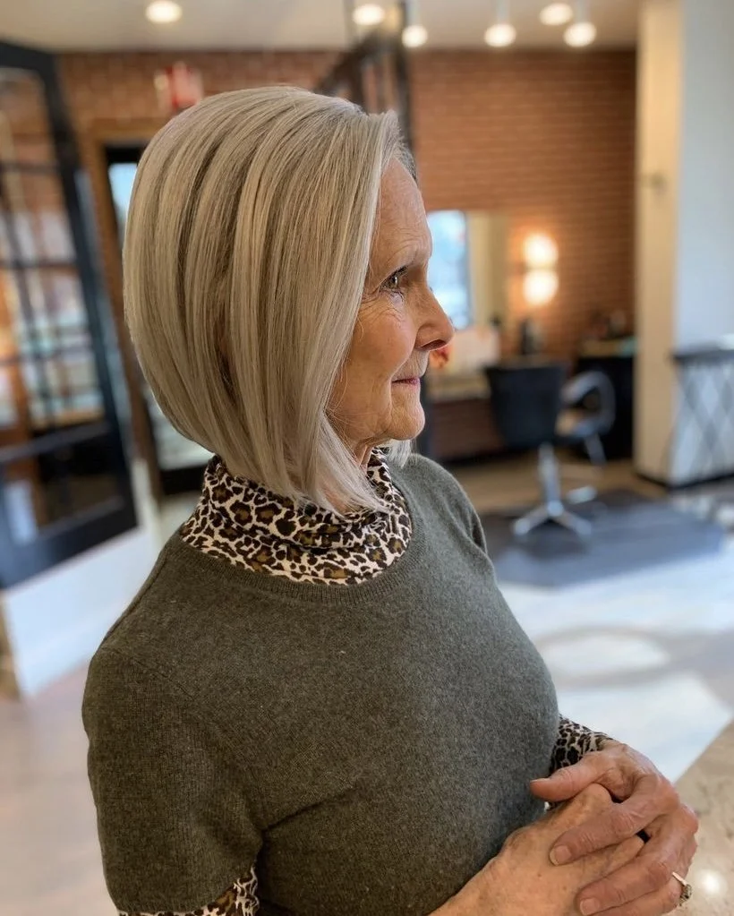 Classic accent and detail coloring with bond builder, base breaker, toner, and curl cut.